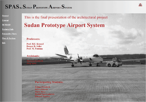Das gesamte Entwurfsprojekt, welches während 8 Wochen erstellt wurde haben wir über das Internet in 2D und 3D präsentiert. Ein absolutes Novum im Winter 96/97. In meinen Aufgabenbereich vielen neben der Entwicklung des Check-In-Bereichs die Programmierung der Website, die Organisation der Block- und XRefbasierten CAD-Zeichnung auch die Erstellung der VRML-Modelle und -Animationen.